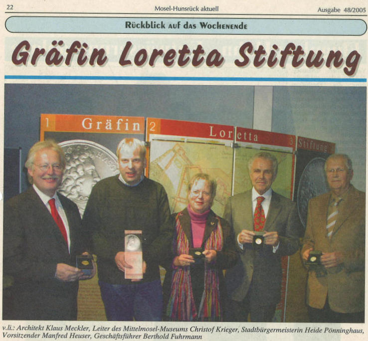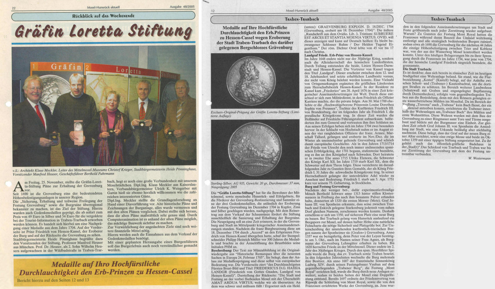 Erhaltung und Aufwertung der Grevenburg eine der drei Gedenkmedaillen,